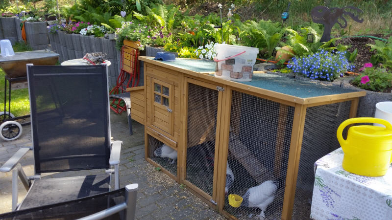 Wir hatten das Glück für "kleines Geld" den im obigen Bild zu sehenden mobilen Stall zu bekommen und nutzen den nun wie hier beschrieben.